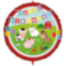 Ge het feestje een landelijke sfeer met deze ronde folieballon met schattige boerderijdieren! Een charmante decoratie die perfect is voor kleine dierenliefhebbers of feestjes met boerderijthema.