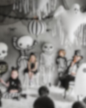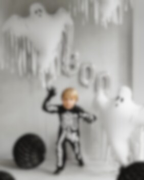 Deze grote folieballon in de vorm van een wit spook met zwarte ogen en mond zorgt voor een klassiek griezelige sfeer. Perfect als blikvanger bij de ingang, aan het plafond of als onderdeel van een grotere halloweenversiering.