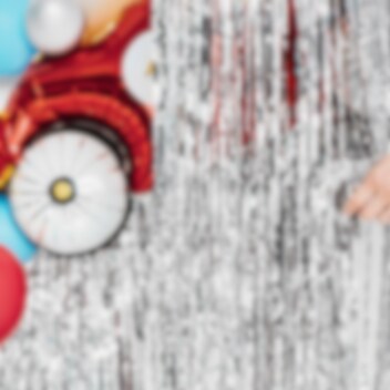 Deurgordijn in zilverkleur. Een stoere decoratie om in de deuropening of aan de muur te hangen voor het kinderfeestje, feestje of babyshower. Het deurgordijn is ongeveer 90 x 250 cm groot.
