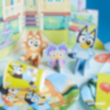 Bluey tafeldecoraties in zeven delig zijn perfect om een feestelijke en speelse sfeer te creëren op het Bluey-kinderfeestje. De decoraties zijn gemaakt van karton en komen in drie verschillende maten, 50 x 36 cm, 8 x 5 cm en 19 x 12 cm.