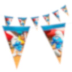 Mooie vlaggenlijn met motieven van de Smurfen. De vlaggenlijn is gemaakt van plastic en is 5 meter lang en zal een leuke decoratie zijn voor je kinderfeestje.