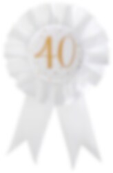 Mooie rozet in wit en goud met het getal 40 erop gedrukt. De rozet kan zowel als decoratief accessoire in bijvoorbeeld bloemstukken worden gebruikt, als door jou gedragen worden op je 40ste verjaardag. De rozet zijn 8 cm in diameter en 15 cm hoog.