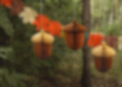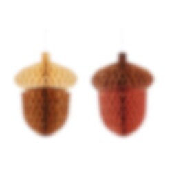 Deze sfeervolle honeycombdecoraties in de vorm van eikels zijn perfect voor herfstdecoraties en feestjes met een bos-thema. Hang ze aan het plafond, aan een tak of voor het raam om een warme en natuurlijke sfeer te creëren.