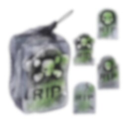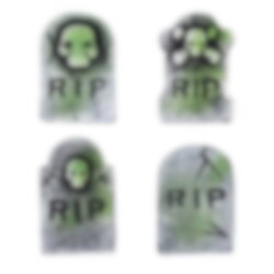 Creëer een griezelige kerkhofsfeer met deze mini grafstenen voor Halloween! De grafstenen zijn 10 cm hoog en gemaakt van piepschuim, waardoor ze licht en eenvoudig te plaatsen zijn op tafels, planken of als onderdeel van een enge scène met andere decoraties. Perfect voor zowel binnen als buiten om je feest een angstaanjagende uitstraling te geven.