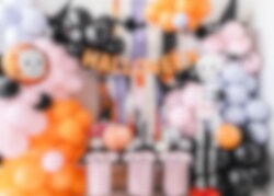 5 decoratieve spinnen om op te hangen voor Halloween! Elke spin is 27 x 17 cm groot en ze zijn gemaakt van papier.