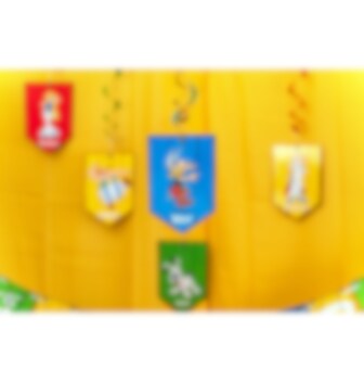 Maak de Asterix-tafelschikking compleet! Deze kleurrijke tafelloper van polyester is 28 cm breed en 3 meter lang.