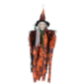 Creëer een griezelige sfeer met deze hangende heks voor Halloween! De figuur is 60 cm lang en heeft een angstaanjagende look met hoed, haar en gescheurde kleren die bewegen wanneer ze hangt. Perfect om bij de ingang, in een boom of als onderdeel van je binnendecoratie te gebruiken om gasten en trick-or-treaters te verrassen.