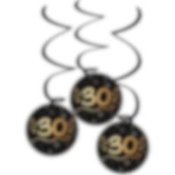 Geef je feest een elegante twist met deze hangende swirl-decoraties, ontworpen om speciale 30-jarige jubilea te vieren. Elke set bevat drie swirls in een luxe gouden tint, elk 60 cm hoog en 13 cm breed.