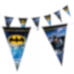 Vlaggenlijn met afbeeldingen van Batman. De vlaggenlijn is gemaakt van plastic, is 5 meter lang en zal een leuke decoratie zijn voor je kinderfeestje.
