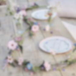 Deze prachtige bloemenslinger is het perfecte detail voor feestelijke gelegenheden. Met mooie kunstmatige margrieten, korenbloemen, lavendel en bladwerk verandert het je decoratie in een oogwenk. Perfect om tafels, muren of pilaren mee te versieren.