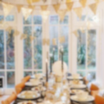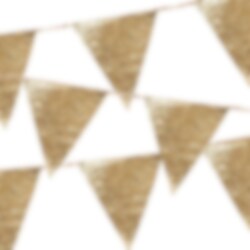 Creëer een sfeer van feest en glamour met deze luxe goudglitterende slinger. Met zijn lengte van 3 meter voegt hij een vleugje elegantie toe aan elke gelegenheid. Elke wimpel is 16 cm hoog.