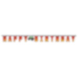 Fijne slinger van papier met de tekst "Happy Birthday" en mooie Monster Truck-motieven. De slinger is 2 meter lang.