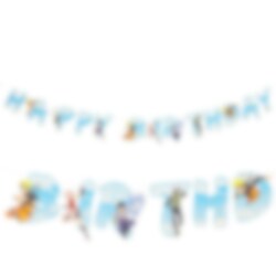 Fijne slinger van papier met de tekst "Happy Birthday" en mooie afbeeldingen van Naruto. De slinger is 2 meter lang en de letters zijn ongeveer 16 cm hoog.