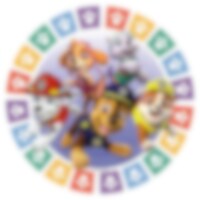 Stijlvolle "Happy Birthday"-slinger met afbeeldingen van de honden uit Paw Patrol. De slinger is ca. 1,8 meter lang en de letters zijn elk ca. 15 cm hoog.