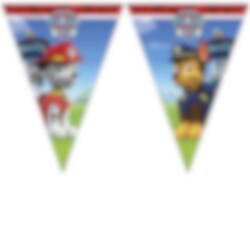 Supermooie vlaggenlijn met aan beide kanten afbeeldingen van Chase en Marshall uit Paw Patrol. Een vrolijke decoratie voor het kinderfeestje. De vlaggenlijn is gemaakt van kunststof en heeft een lengte van 2,3 meter.
