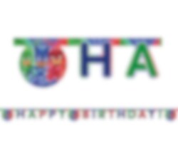 Stoere slinger met de tekst Happy Birthday en met motieven van de PJ Masks. Een coole decoratie voor je kinderfeestje. De slinger is gemaakt van papier en is ongeveer 200 cm lang.