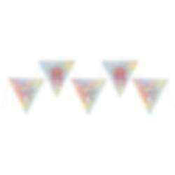 Slinger met schattige afbeeldingen van elfen en eenhoorns. Perfect om de kamer mee te versieren voor een kinderfeestje. De slinger is 5 meter lang en bevat 10 papieren vlaggetjes van 20 x 22 cm.