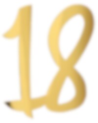 4 stuks decoraties van het getal '18' gemaakt van goudgefolieerd karton. Deze decoraties hebben veel toepassingen en kunnen worden gecombineerd met andere dingen in het 18-jarig thema. De decoraties zijn 18 x 20 cm groot.
