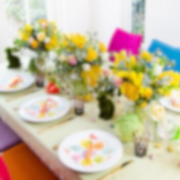 Schattig konijn bedekt in grasachtig materiaal. Versier de tafel met deze om de stemming te verhogen voor het kinderfeestje of het feest. Het konijn is gemaakt van plastic en is ongeveer 15 cm groot.
