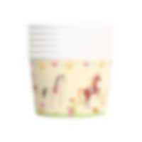 Serveer ijs of lekkernijen in deze schattige bekers met paardenthema. Met kleurrijke paarden, bloemen, hartjes en hoefijzers roepen ze de sfeer op van een zonnige dag op het platteland – ideaal voor kinderfeestjes met een stalthema. De bekers zijn gemaakt van karton, zijn 5,4 cm hoog en hebben een inhoud van 150 ml.