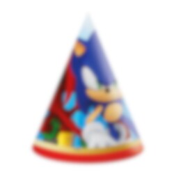 6 feesthoedjes met afbeeldingen van Sonic the Hedgehog. Leuk voor ieder Sonic-kinderfeestje. De hoedjes zijn ca. 19 cm hoog en blijven goed zitten dankzij een comfortabel elastiek.