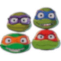 6 kartonnen maskers met de verschillende karakters uit Ninja Turtles. Ze zijn ongeveer 20 x 28 cm groot en blijven goed zitten dankzij een comfortabel elastiek.