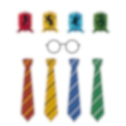 Het pakket bevat accessoires zoals stropdassen in de verschillende kleuren van de huizen (Griffoendor, Zwadderich, Ravenklauw en Huffelpuf), zwarte brillen en labels met de namen van de huizen. Dit zorgt voor een leuke en thematische foto-ervaring die iedereen zal waarderen!