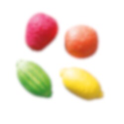 Ingrediënten: Suiker, glucosestroop, kauwgombasis (sojalecithine), aroma’s, zuurteregelaar (E296), glansmiddelen (E901, E903, E904), kleurstoffen: E100, E120, E133, E160c.