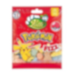 Lutti Pokémon Fizzy. Zacht gearomatiseerde en zure schuimsnoepjes in de vorm van verschillende pokémons met goede fruitsmaken.