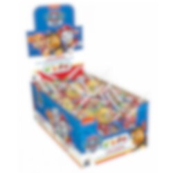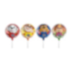 Paw Patrol snoepje lolly's in vier verschillende smaken: sinaasappel, appel, aardbei en framboos. De lolly's worden ongesorteerd en per stuk verkocht. Gewicht 10 gram.