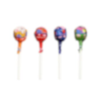 Peppa Pig lolly's in vier verschillende smaken: sinaasappel, appel, aardbei en framboos. De lolly's worden ongesorteerd en per stuk verkocht. Gewicht 10 gram.