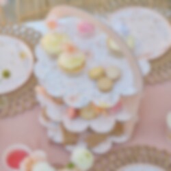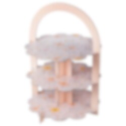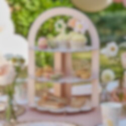 Breng het beste van je feesttafel naar voren met onze pastelkleurige Roze Bloemen-standaard. Deze elegante 3 niveaus standaard is het perfecte middelpunt om lekkernijen te serveren tijdens stijlvolle vieringen.
