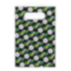 8 stuks zwarte papier uitdeelzakjes met coole motieven van voetballen en groene voetbalschoenen. Vul de zakjes met lekker snoep en leuk speelgoed en geef ze tijdens het kinderfeestje aan je vrienden.