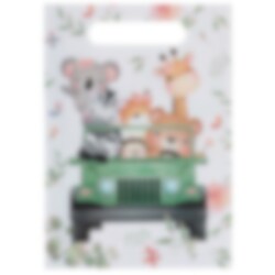 10 uitdeelzakjes van glanzend iets dikker papier met motieven van schattige safaridieren. Perfect om te vullen met de favoriete snoepjes en speelgoed van de kinderen als het tijd is voor een kinderfeestjeje.