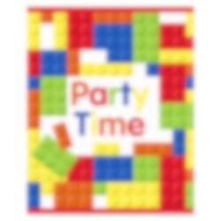 8 plastic zakjes met een kleurrijk bouwstenenontwerp en de tekst "Party Time". Perfect om te vullen met snoep, kleine speeltjes of andere verrassingen die kinderen na het feestje mee naar huis kunnen nemen. Elk zakje heeft een handvat en is ideaal voor een verjaardag met bouwthema.