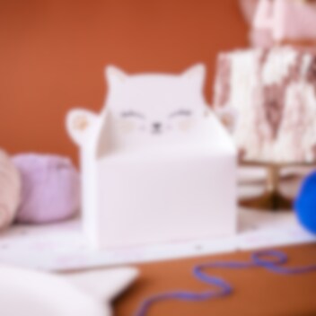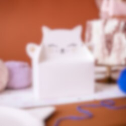6 feestboxen in lichtroze en wit met charmante afbeeldingen van katten. Perfect om te vullen met lekkernijen en je gasten te verrassen op een kattenthema-kinderfeestje. De feestboxen zijn gemaakt van hoogwaardig karton en hebben een formaat van 19,5 x 19 x 8 cm wanneer gemonteerd.