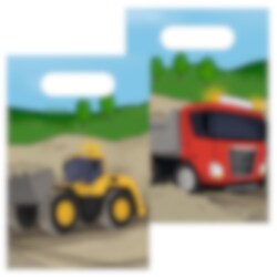 8 uitdeelzakjes van papier met motieven van verschillende bouwmachines. Leuk om weg te geven aan de vrienden die op je kalas komen. De zakjes zijn 23 x 16 cm groot.