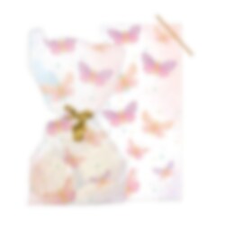 20 uitdeelzakjes van cellofaan met afbeeldingen van kleurrijke vlinders. De zakjes zijn 29 cm hoog.