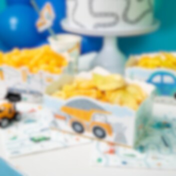 3 snackbakjes met mooie voertuigmotieven, perfect om te vullen met snacks of snoep en tegelijkertijd decoratief."