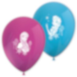 8 ballonnen in blauwe en paarse tinten met afbeeldingen van de zusjes Anna en Elsa uit Frozen 2. Versier de kamer voor een magisch kinderfeestje met een Frozen-thema. Opgeblazen hebben de ballonnen een diameter van ongeveer 30 cm en kunnen worden gevuld met gewone lucht of helium.