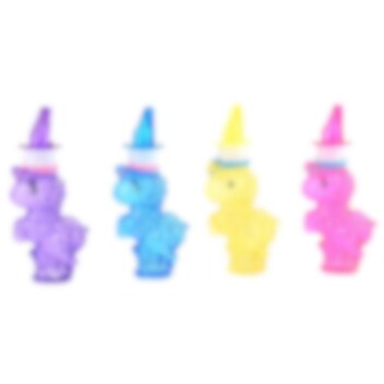 Schattige bellenblaas waarbij de flesjes de vorm hebben van eenhoorns. Op het deksel zit ook een fluitje. Leuke verrassing om in de uitdeelzakjes te doen en dan aan vrienden op je kinderfeestje te geven. De fles bevat ongeveer 80 ml en is 15 cm hoog. De bellenblaas worden per stuk en ongesorteerd verkocht.