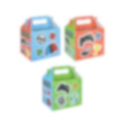 Coole feestbox met drie verschillende gaming-afbeeldingen. Perfect om snoep en speelgoed in te doen voor het kinderfeestje. De feestbox is gemaakt van papier en is makkelijk op te vouwen.
