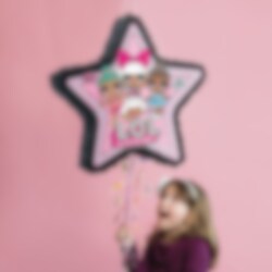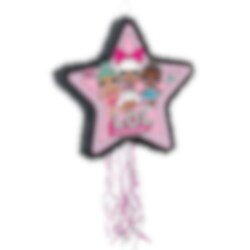 Supermooie piñata met afbeeldingen van LOL Surprise. Een leuke afsluiter van het kinderfeestje! Vul de piñata met snoep en verrassingen en laat de kinderen om de beurt aan een lint trekken om de inhoud eruit te krijgen.