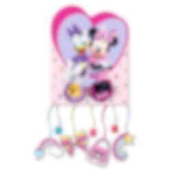 Een eenvoudige piñata met een afbeelding van Minnie Mouse en haar vriend. Vul de piñata met verschillende snoepjes en klein speelgoed. Deze piñata heeft linten en gaat open door aan het juiste lint te trekken, waarna alle verrassingen eruit vallen. De piñata wordt zonder inhoud verkocht en is ongeveer 21 x 27 cm groot.