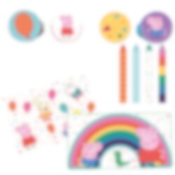 16 verschillende speelgoed met Peppa Pig-motieven. Een leuke verrassing om voor het kinderfeestje in het uitdeelzakje te doen. Het pakket bevat 4 stuks postzegels, 4 vel met stickers, 4 kleine kleurboekjes en 12 kleurpotloden.