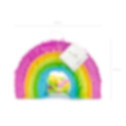 Coole piñata in de vorm van een kleurrijke regenboog. Een leuk item om mee te nemen naar het kinderfeestje, zowel als speelgoed of als tafeldecoratie. Vul de piñata met snoep en speelgoed en laat de kinderen om de beurt aan een lint trekken om te zien wie hem leegmaakt.
