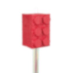 Leuke piñata in de vorm van een rode blokjes, perfect voor het kinderfeestje. Onder de piñata hangen linten waaraan de kinderen kunnen trekken. Eén van de linten opent de piñata en laat de vulling eruit vallen.