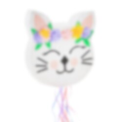 Mooie piñata in de vorm van een kattenkop versierd met bloemen. Een Piñata is een leuke verrassing op elk kinderfeestje en kan gevuld worden met snoep en klein speelgoed. De piñata is ongeveer 33 x 35 x 7,5 cm groot.