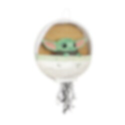 De ultieme piñata voor je Star Wars-kinderfeestje! De piñata heeft de vorm van een zweefwagen met Grogu erin, met linten die eronder hangen. Trek om de beurt aan een lint met je vrienden; één ervan zorgt ervoor dat de bodem opengaat en de inhoud eruit valt.
