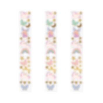 23 stickers met mooie eenhoornmotieven in 12 verschillende uitvoeringen. De stickers zitten op een praktische rol die 126 cm lang is.